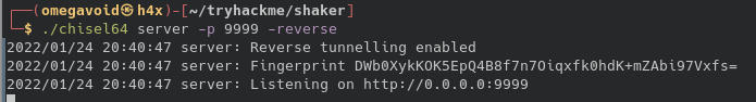 On our machine we start a chisel server on port 9999: